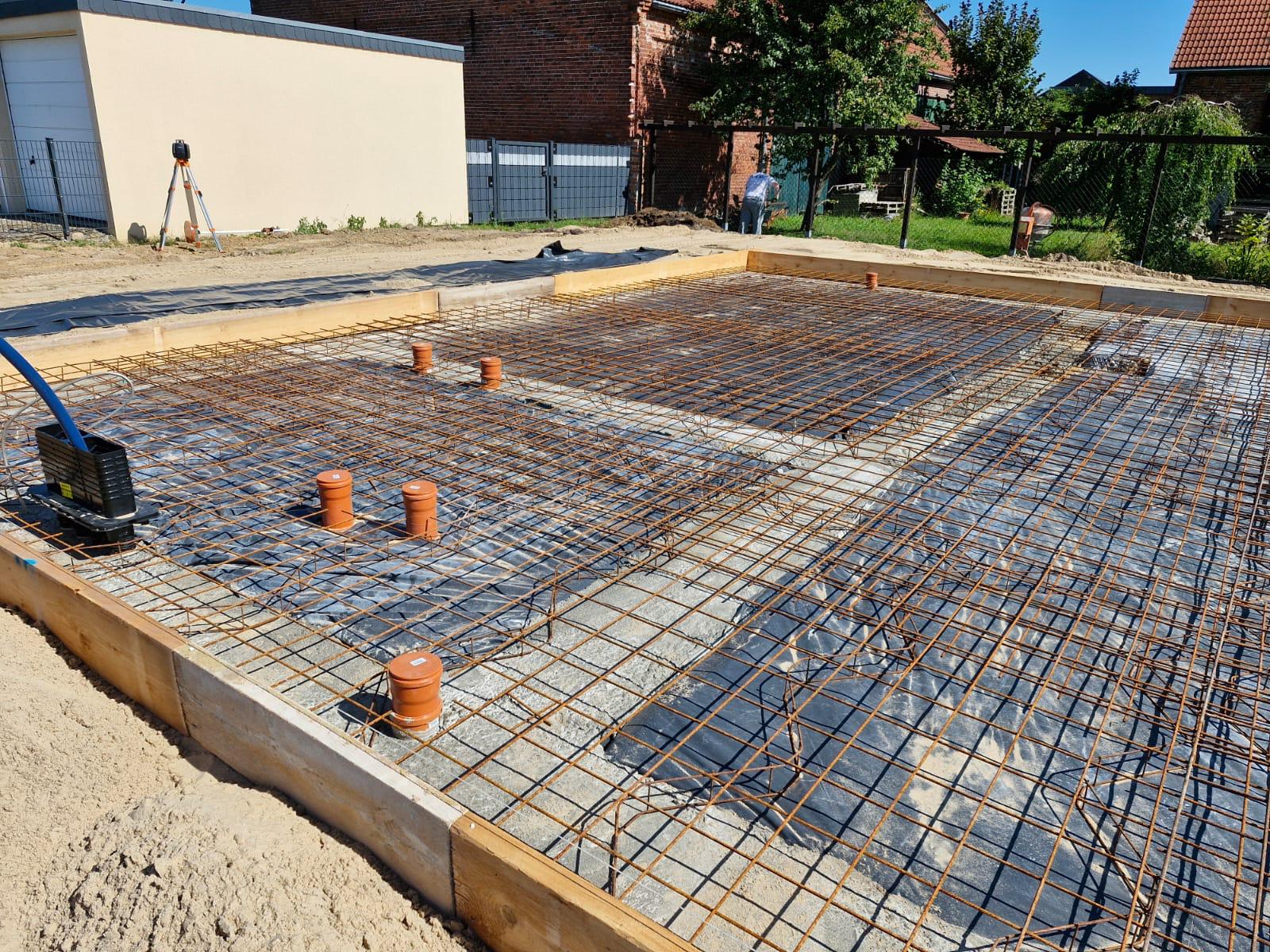 Die Bauarbeiten für unsere Bauherrenfamilie haben begonnen. Die Vorbereitungen für die Bodenplatte sind in vollem Gange.